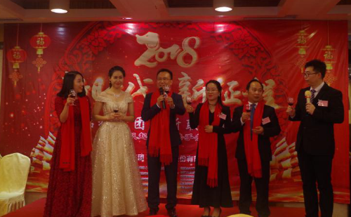 随后,董事长与集团总经理颜春红女士、铭捷业务总监殷凌云先生、佰利佳业务总监邓青女士一起举杯共庆,铭捷集团2017晚宴年会正式拉开序幕。
